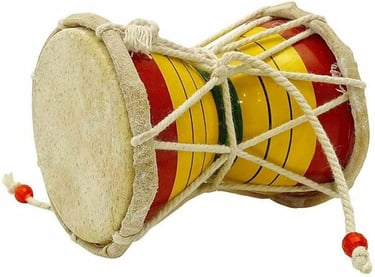 The damroo, or damru, is a small, hourglass-shaped drum that is often associated with the Hindu god Shiva. It symbolises the sound of creation, the rhythm of the universe, and the cycle of life, death, and rebirth. The damroo is also represents the union of male and female energies, as well as the balance between opposing forces.